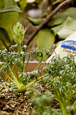 何とも不思議な話題の逸品。太陽のミラクルパワーで葉っぱがクルクルクルクルくーるくる!!あげもりヘアーの出来上がり!